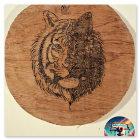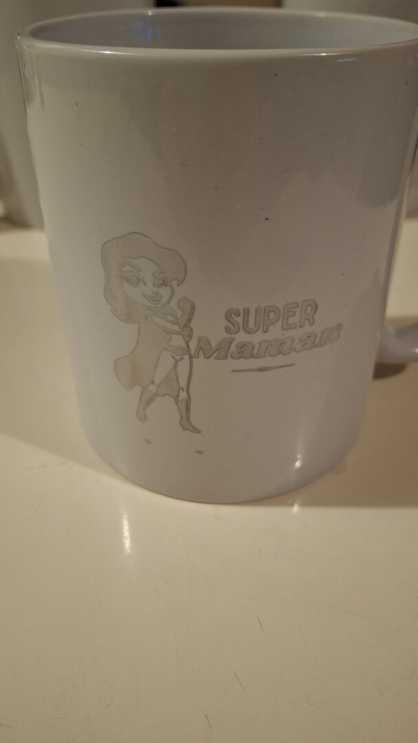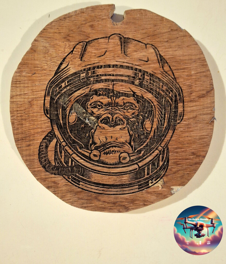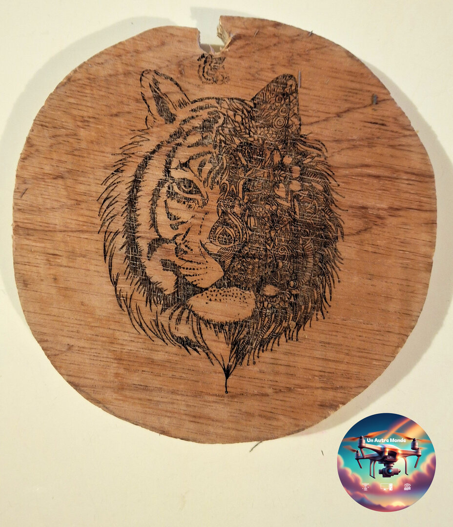 - Bois : gravure brun foncé à noire, plus ou moins profonde selon réglage. Option huilée/vernie pour protection.