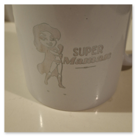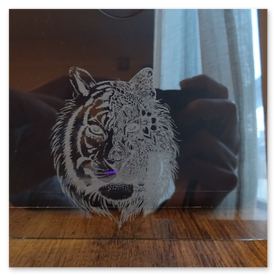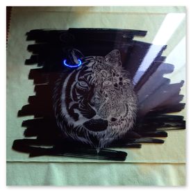 - Acrylique : rendu blanc/mat (transparent) ou ton sur ton (teinté). Possibilité de peinture de remplissage dans la gravure.