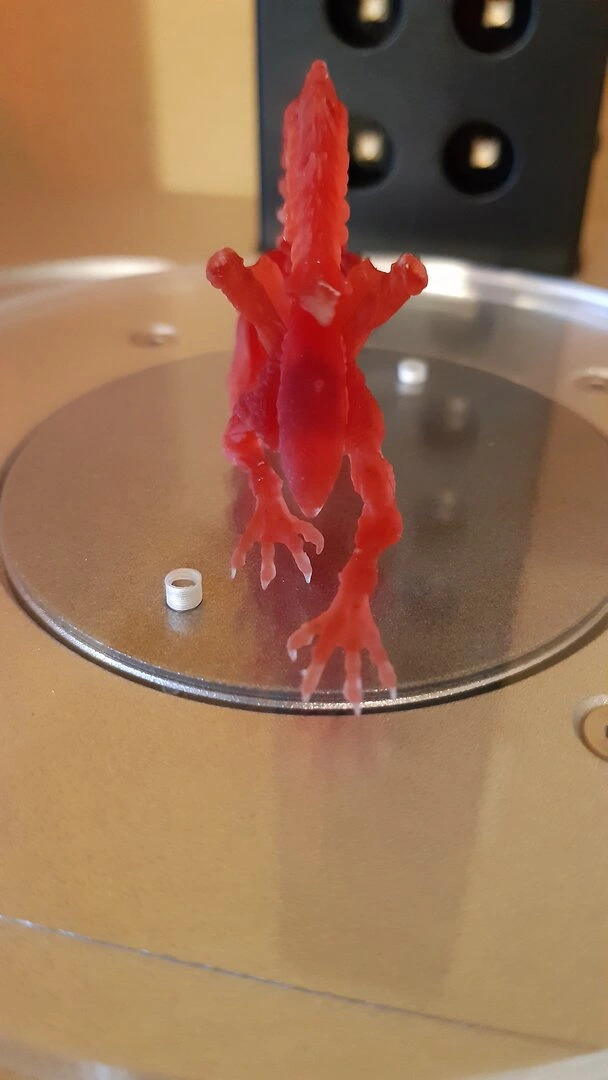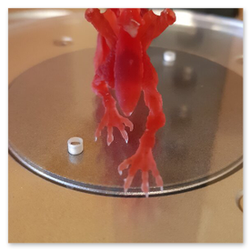 Un objet peut être imprimé en 3D en étant déplacé de bas en haut afin de créer de l'espace pour les polymères non solidifiés dans le fond du réservoir.